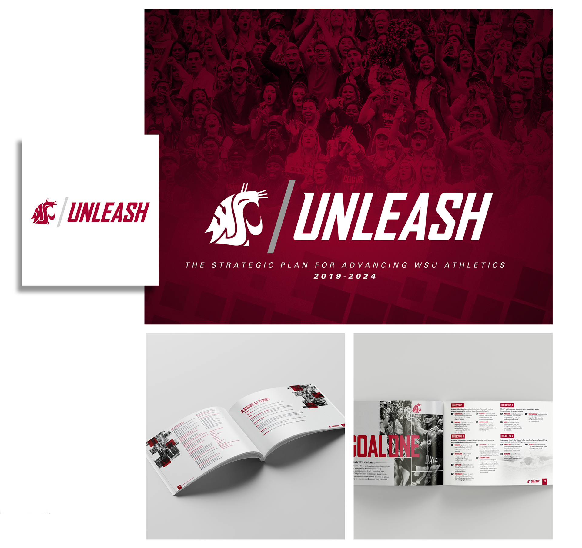The request for the design of WSU Athletics’ Strategic Plan was to be “modern, clean and to have momentum.” Using this direction, I established the following brand, drawing inspiration from Nike, to create the logo and the overall look.